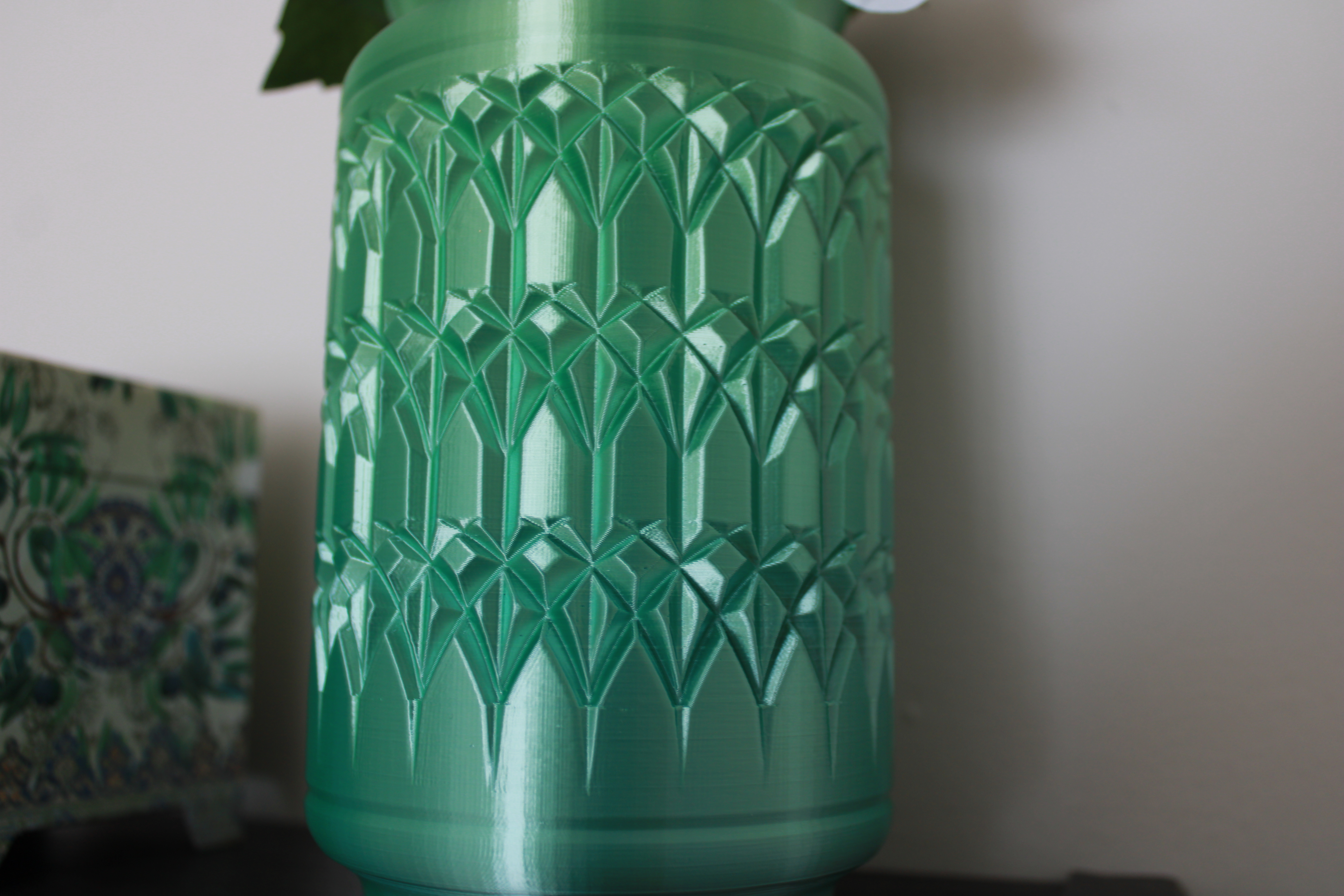 I’ve made a lot of vase models but this is by far the largest and most complex. Inspired by a Tiffany flower vase that’s constantly filled with seasonal potpourri in our household, the reed-like sliced etchings were created by making a pattern of swept cuts. This technique is what gives the etchings their varied depth for a more organic aesthetic.