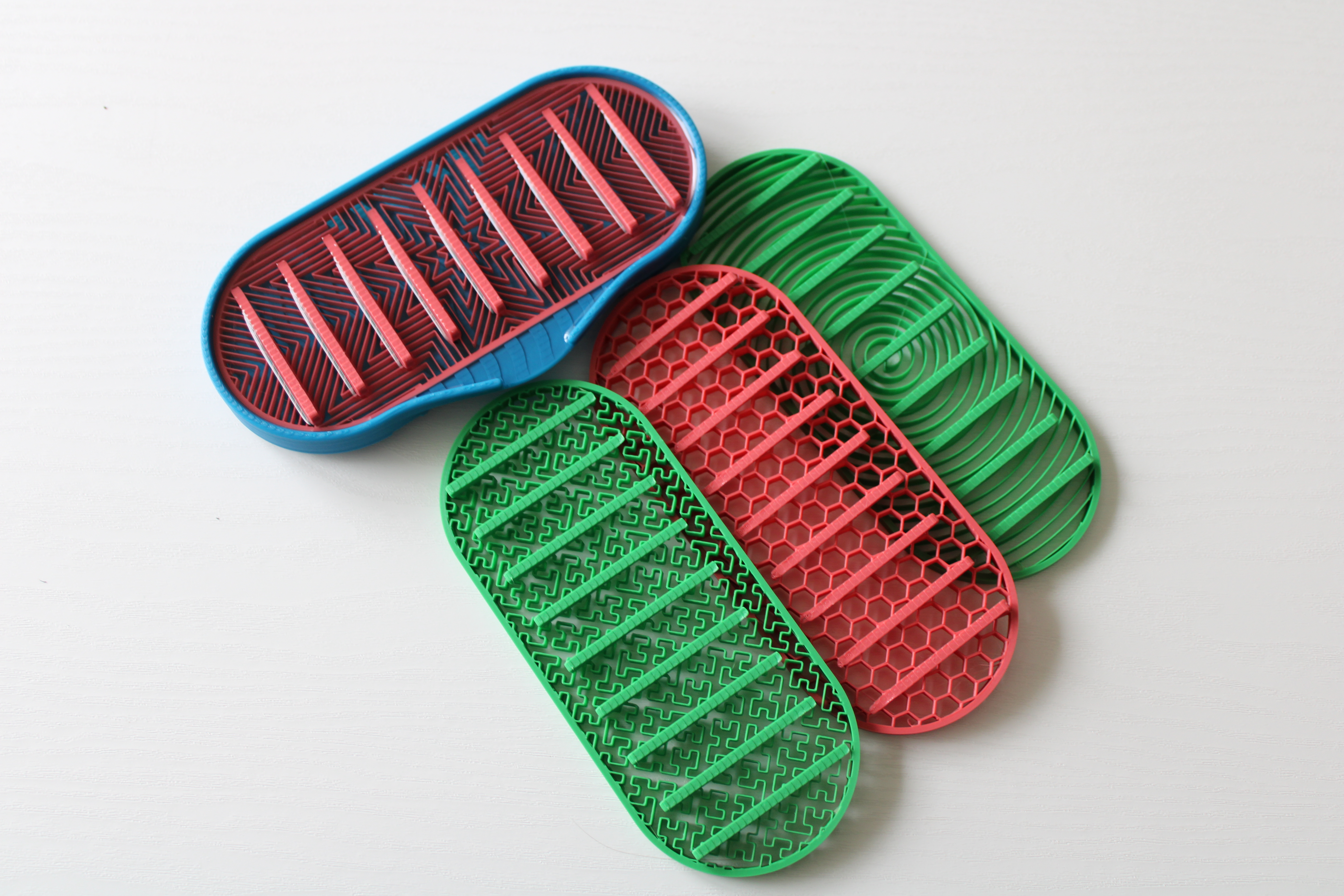 I’ve always needed a soap dish in my kitchen to hold soap dispensers and help the excess water drain into the sink. The problem with traditional 3D printed soap dishes is that a 3D printed plastic part is not exactly waterproof because of the different layers. I wanted to use PLA and still be able to have interesting 3D patterns to add depth. So, I decided to use pourable epoxy, which could help make a smooth, waterproof surface for draining water while still showing the patterns beneath the surface.