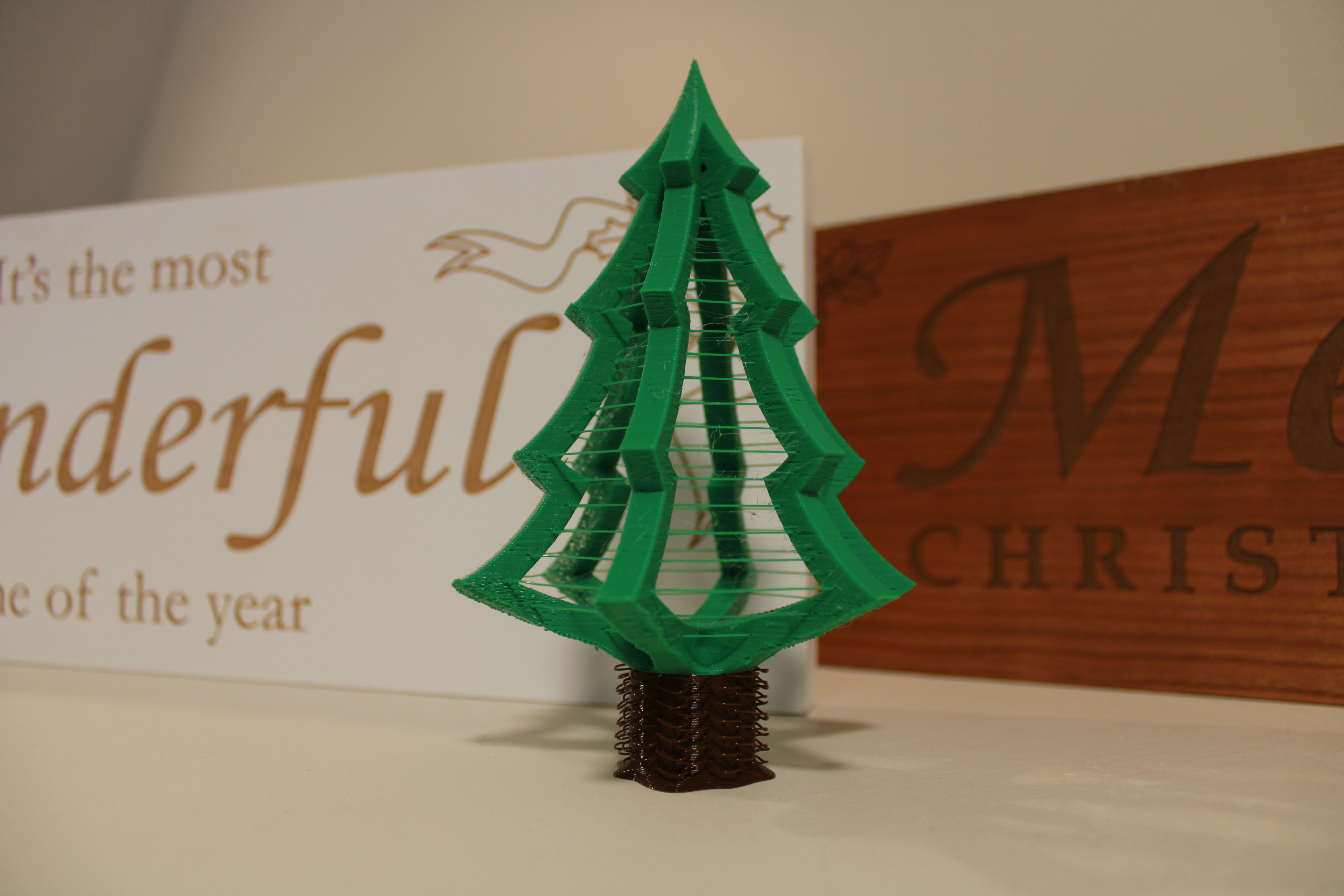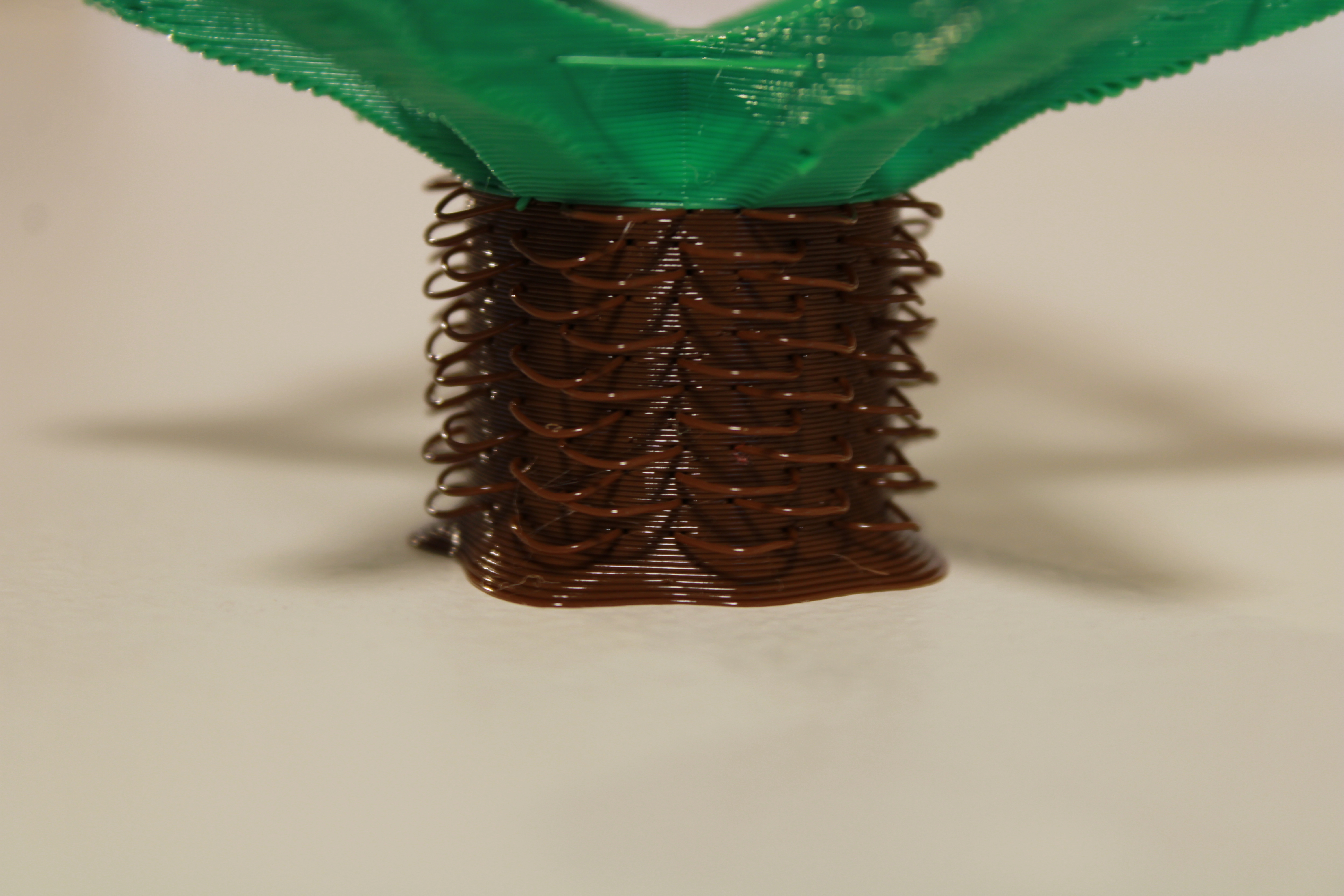 My take on a deconstructed, minimalist Christmas tree that uses a lot of bridging! While bridges are a critical part of many prints in overhangs, for example, they can also be used to stretch the limits of a 3D printer’s capabilities in artistic prints. There are two bridging techniques that I employed in this model. The first is a simple horizontal point-to-point line, which results in a single strand of plastic bridging the two points. The second, which was more experimental for me, is the loops on the tree trunk that are made with a curved bridge that will droop down as it’s printed, giving an interesting texture and depth to the surface.