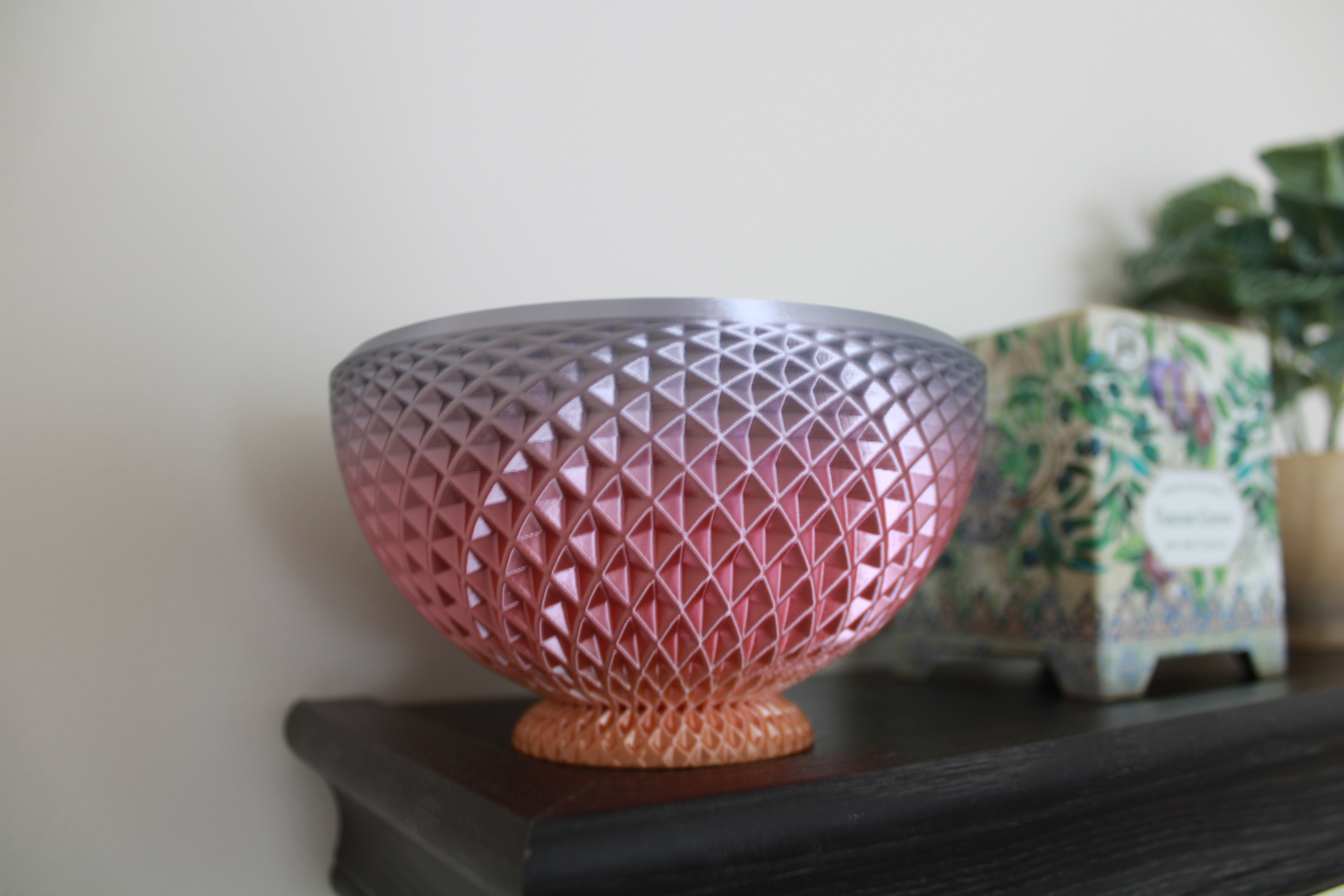 The Tetrahedrinsanity Bowl is the result of a possibly excessive amount of patterning, if that’s even possible? The power of patterning parts and features in CAD modeling can generate some of the most captivating designs and this bowl is no exception. I loved the look of this bowl so much that I made two vase models that are variations on this design.